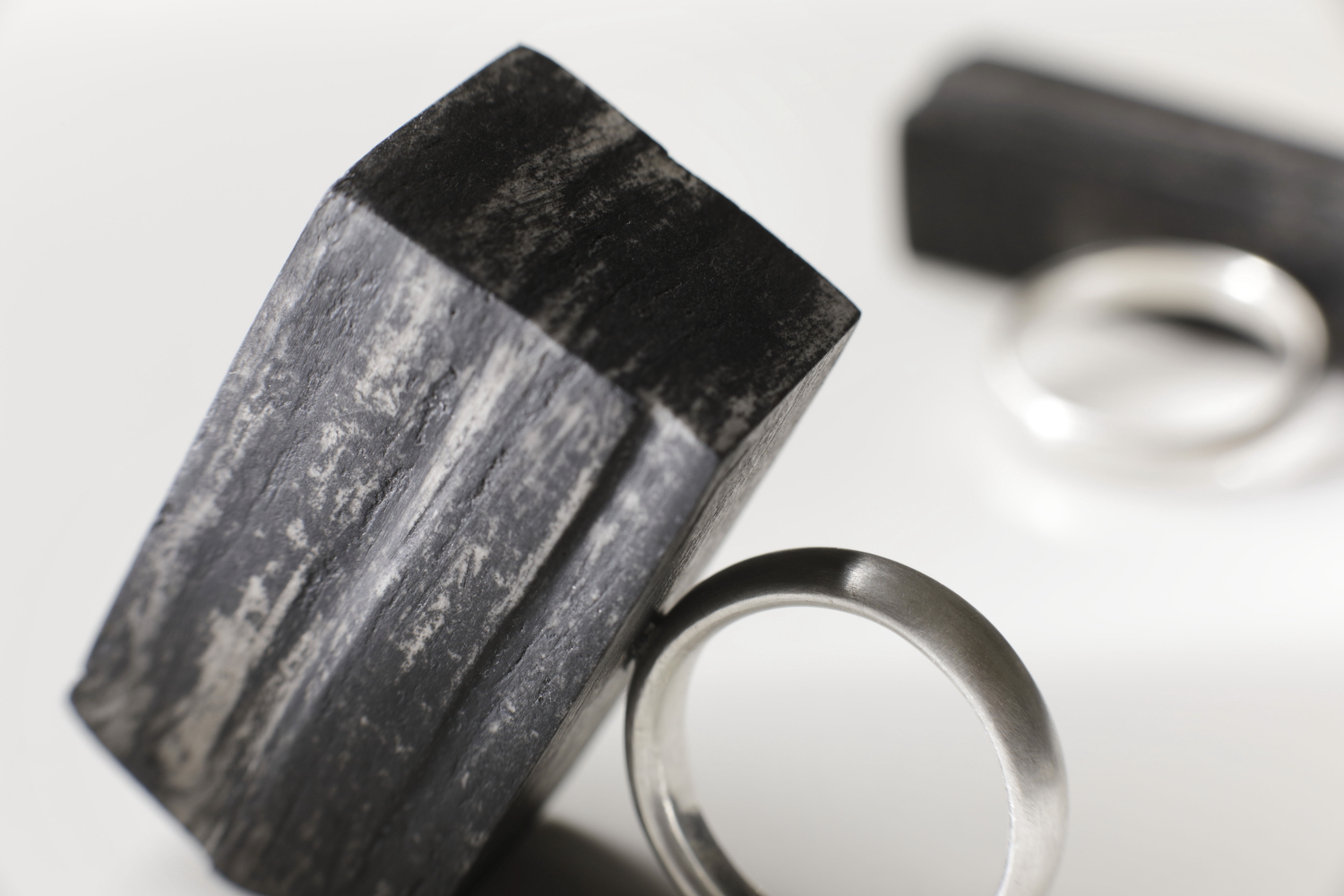 Stones is a collection of rings. The result is a new monolithic material that confounds the senses. Hard-graspable material for the mind lures to physical touch; for the eye, an impression of weight is created, and for the hand it is pleasantly light and secure.